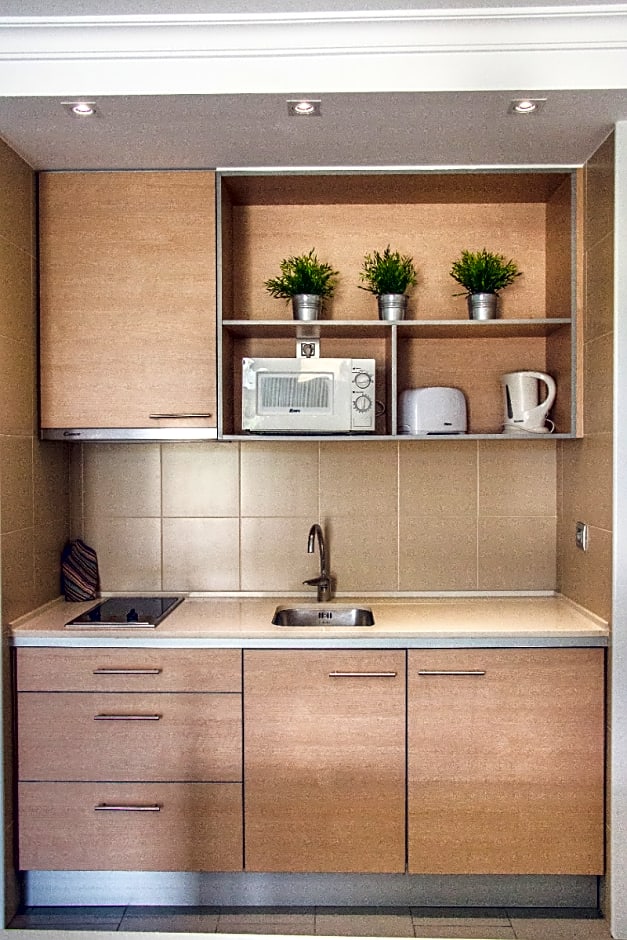 This suite has a balcony, microwave and dining area. The fully equipped kitchen comes with an electric hob, microwave and a fridge.